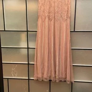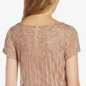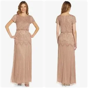 ADRIANNA PAPELL SHORT SLEEVE BLOUSON BEADED GOWN IN ROSE GOLD