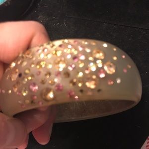 Vintage acrylic frosted bangle bracelet with rhinestones