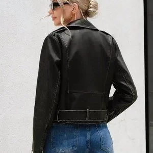 Black Casual Womens Zip Up Moto Jacket