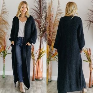 Oversized Maxi Duster Open front Cardigan Puff Black Small New