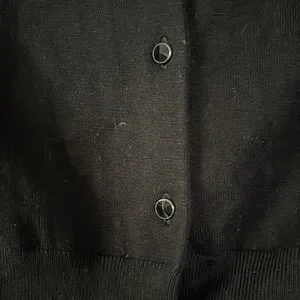 Cropped cardigan with bejeweled rhinestone design. Button down, short sleeve. New without tags; never worn. Has tiny hole at sleeve (shown) which can be repaired. Otherwise in perfect like-new condition! Express Design Studio brand.