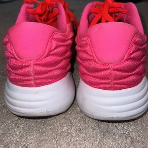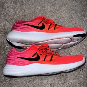 Nike Lunar Stelos Women’s Sneakers size 9.5 pink multi color. These are pre-owned and only worn a few times inside the house. Overall good condition. Comes from a smoke and pet free home.