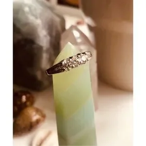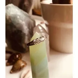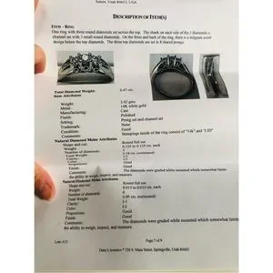 Selling my 100% REAL diamond and white gold ring. It’s been authenticated by my local jeweler/gemologist. You will receive the 9-page official appraisal paperwork, a pamphlet for understanding the color and clarity of the diamonds, the small green jewelry pouch, and the gift bag. Three larger diamonds surrounded by six pave diamonds (3 on either side). Total Diamond carats ~.47 (approx. because the stones were evaluated in the 14K white gold setting). Total weight is 3.42 grams. Size is 5.5. It’s difficult to part with, but I never wear it. Purchased in 2005 from a jeweler that is no longer in business, so technically it’s nearly a vintage piece at this point. Appraised at $1662.37. Give my baby a good home! #near #colorless #14K #karat #white #gold #nearly #half #carat #diamonds