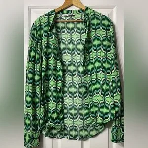 Green patterned button up Size M