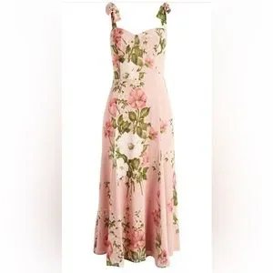 NWT Reformation Nadira Tie Strap Sweetheart Midi Dress Size 8 Rose Garden