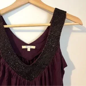 MATTY M. Royal Purple Beaded V-Neck Tank (XS)