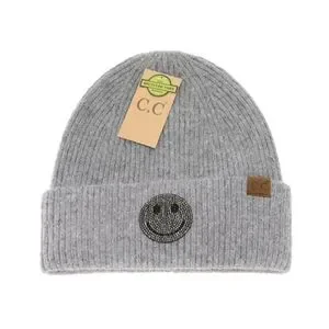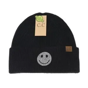Fall & Winter MUST HAVE Rhinestone Smiley Face Cuff Beanie