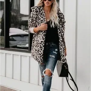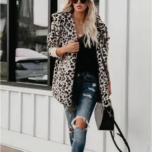 Animal print leopard plush hooded jacket coat winter cardigan with pockets