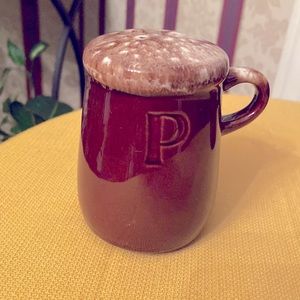 Vintage Brown Drip Glazed Pottery, Salt and Pepper Shakers, Barrel Shaped with Handles. No Makers mark on bottom. Approximately 3 1/2 inches tall. Beautiful Condition. Needs new stoppers for bottom.