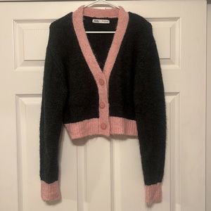 Zara Grey and Pink Wool Sweater