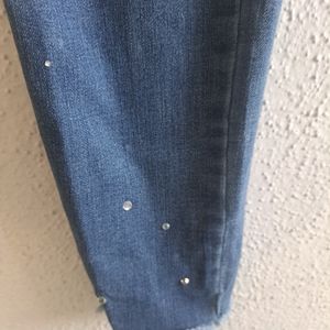 Super Cute with little light pink rhinestones, distressing and alittle Fringe at cuff