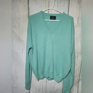 Vintage 80's Jantzen v-neck sweater Made in USA Size XL Mint green color Lightweight 100% Orlon acrylic Preowned good condition