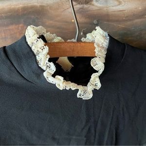 Vintage black lace-edged blouse / cream lace Wednesday handmade one of a kind