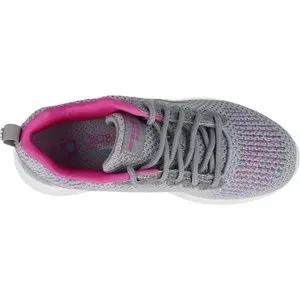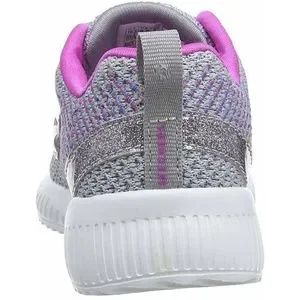 A versatile colorful sporty look comes with wonderful comfort in the SKECHERS Lil BOBS Sport Squad - Glitter Charm shoe. Soft woven sporty knit fabric upper in a lace up fashion sneaker with glitter finish and woven-in colorful details, synthetic overlays and Air Cooled Memory Foam insole.