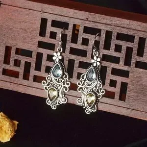 Vintage Silver Floral Gemstone Dangle Boho Earrings Nwt