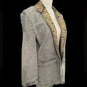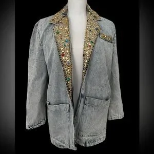 Vintage Bedazzled Acid Wash Jean Blazer - Size L