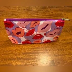 Clinique makeup pouch, makeup bag, cosmetic case, colorful, make up bag, cosmetic bag, lips