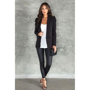Classic and Chic bubble shoulder long sleeve blazer! Dress it up with pencil pants, casual with a Tshirt and jeans, or leather leggings for an edgy style!