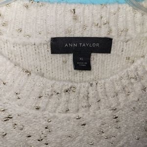 Ann Taylor Puff Sleeve Pullover Sweater White Metallic sz. XL