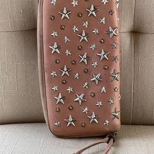 Jimmy Choo Clutch Nellie Star Studded Leather Zip Around Long Wallet Made Italy