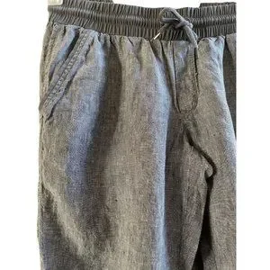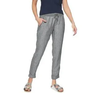 Athleta Womens Bali Linen Cuffed Ankle Cropped Beach Pant Gray Pull On Size 6