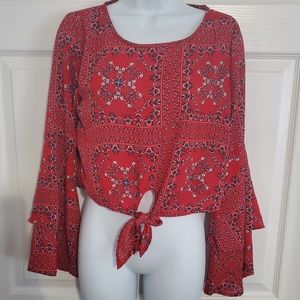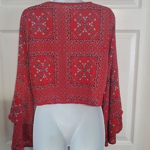 : Altar’d State MacKenzie Crop Top with double Bell Sleeves sz small red