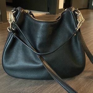 Great condition, back leather bag. Can be worn on shoulder or as crossbody. Some minor wear along seam of edges, see photo.