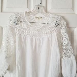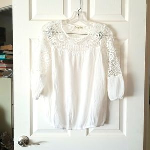 INDIGO ROSE Peasant Boho White Crochet Lace Blouse Size S