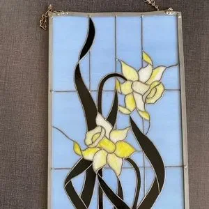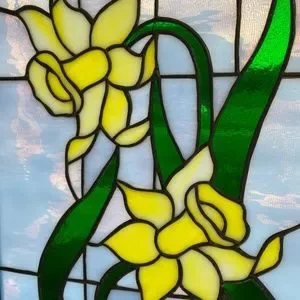 Vintage Stained Glass of Daffodil / Narcissus flowers. The birth flower for March.