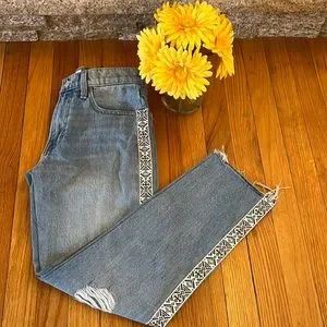 Distressed Lucky Brand Relaxed Taper Jeans with Ribbon Accent Size 24/00 VGC 🌺