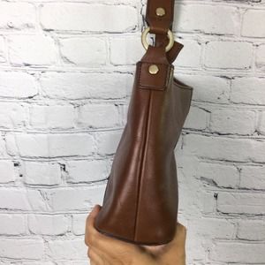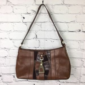 Etienne Aigner Brown Genuine Leather Color Block Zippered Small Shoulder Bag