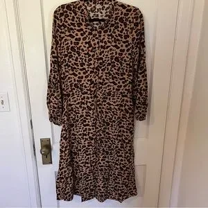 Modest Long Sleeve Leopard Shirt Dress medium
