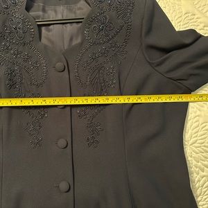 Navy two piece suit with bead detail on jacket. Mother of bride suit.