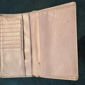 Pink leather wallet, good shape, some wear to corners. 2003-2004- date code 8597751.