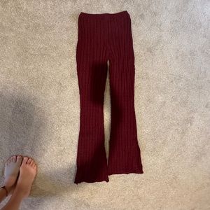 Free People Cable Knit Flare Split Pants in Burgundy