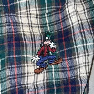This Disney's Goofy pocket flannel is the perfect addition to any wardrobe. The multicolor flannel fabric is soft and comfortable, and the long sleeves make it ideal for cooler weather. The button-up design and pockets add a stylish touch, while the Disney character print adds a fun and playful element. The shirt is labeled as size L and is designed for women. It is made of flannel fabric and features a regular fit. This item is perfect for any Disney or Goofy fan looking to add a unique piece to their collection.