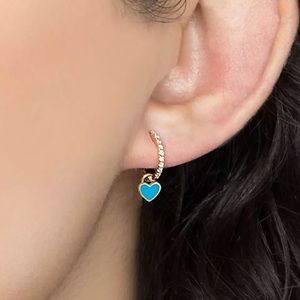 Anthro 925 Sterling Silver Mini Teal Heart Studs or Silver + White Gold overlay Dangle Heart Austrian Crystals hinged Hoops Earrings Turquoise Teal Glaze Boho Clear Dia rhinestones Micro Paved on a hoop Classic Minimalist Charming Round Bead Mini Pins Earrings