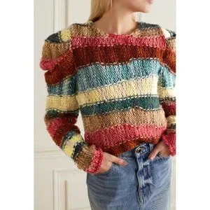 NWT $765 ULLA JOHNSON VIOLETA HAND WEAVED STRIPED MERINO WOOL SWEATER SZ M/L