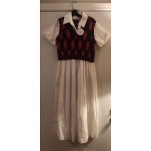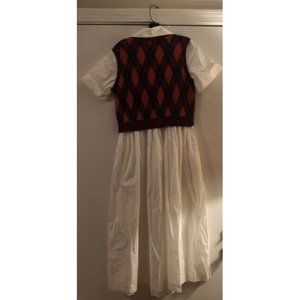New STAUD Jack Knave Argyle Vest Bodice White Stretch Cotton Midi Dress. This style a two-piece look, the argyle detail adds a pop of prep to this stretch-cotton dress, fitted with a full skirt and a pair of handy pockets and short sleeves. The argyle vest is made of 52% cotton, 31% wool, 13% nylon, 4% mohair. The white stretch poplin cotton is made of 98% cotton, 2% spandex. Has short sleeves and a v neck collared button close neckline. Highly sought after dress. Fabric is a very soft 50% merino wool 50% acrylic. In US size small. SOLD OUT EVERYWHERE! New with tags. Originally retailed for $345.