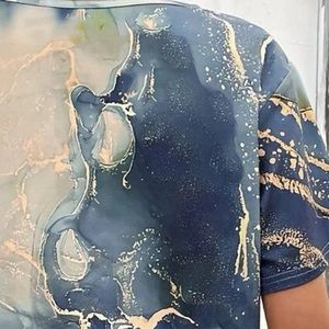 MARBLE PRINT ASYMMETRICAL NECKLINE PRINT TEE