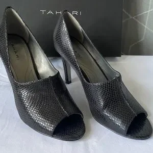 TAHARI - Gorgeous Black Leather Heels in a Size 7.5 Comfortable & Sexy -Peep Toe