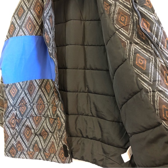 Zara Mens Colorblock Diamond Print Puffer Winter Jacket Size Large NEW