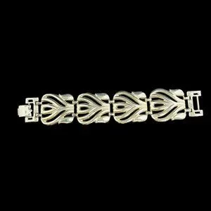 Chunky Gold Tone 4 Panel Link Bracelet. It has a fold over clasp.