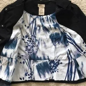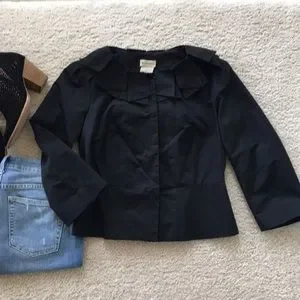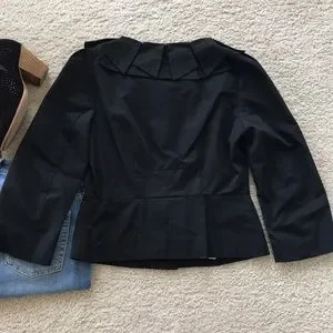 {Anthropologie} Black Petal Collar Jacket by Elevenses. Gorgeous wardrobe staple. Can be dressed up or down. Cropped, peplum styling. Detailed collar. 3/4 sleeves. Snap front closure. Lined. Laying flat approx 19.5” shoulder to hem, approx 17” pit to pit. 55 cotton 45 polyester. Size 2. Excellent condition.