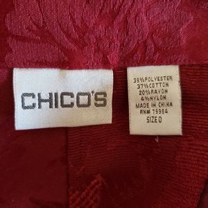 Chico's Red Brocade Tapestry Mandarin Collar Blazer