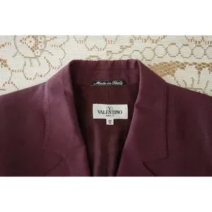 Vintage 90s Valentino Miss V Muted Mulberry Aubergine Silk Linen Blazer 44 US 8