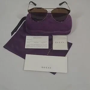 Authentic Gucci Aviator Unisex Sunglasses include are Purple Case, Purple Bag, Lens Cloth & Authenticity Certificate Card.