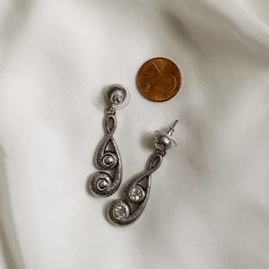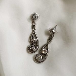 Features an all over silver metal, textured small ribbings, gorgeous twisted swirl design, and 3 large single bezel CZ diamonds.