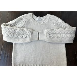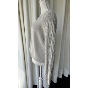 Naadam Women's Hand Knit Cable Sleeve Wool Cashmere Crewneck, Size Small