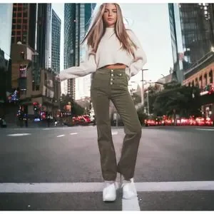 Fitted through h8ip and thigh with a dramatic 70's flare from knee to hem\